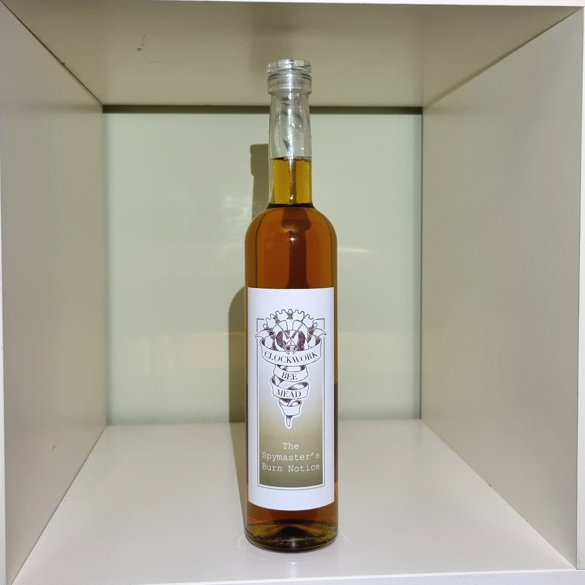 The Spymaster’s Burn Notice is een droge bochet, een mede waarvan 2/3 van de deze keer oranjebloesemhoning gekaramelliseerd is. Na de vergisting is de mede kort gerijpt op eik van whisky vaten.